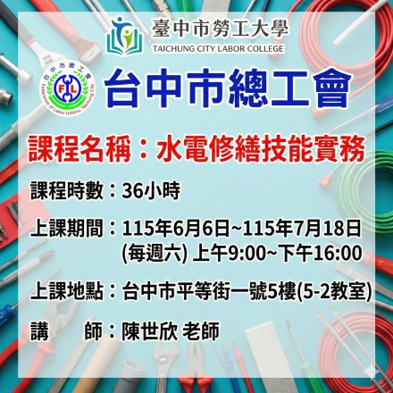 115年度『臺中市政府勞工大學』訓練課程