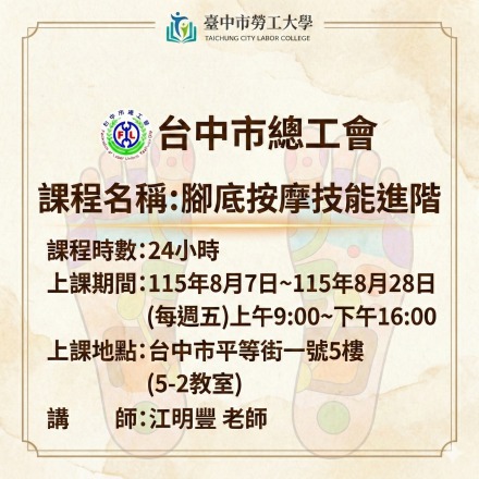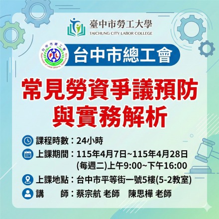 115年度『臺中市政府勞工大學』訓練課程